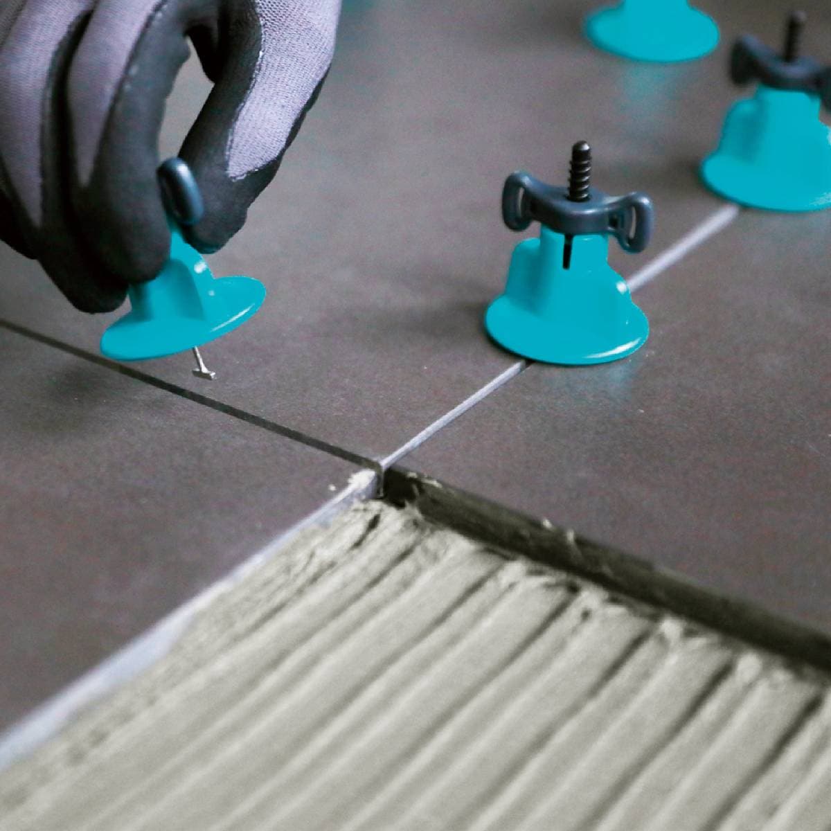 - Συγκρατεί τα πλακάκια δαπέδου και τοίχου στο επιθυμητό επίπεδο και εξαλείφει το “σκαλοπάτι” μεταξύ τους