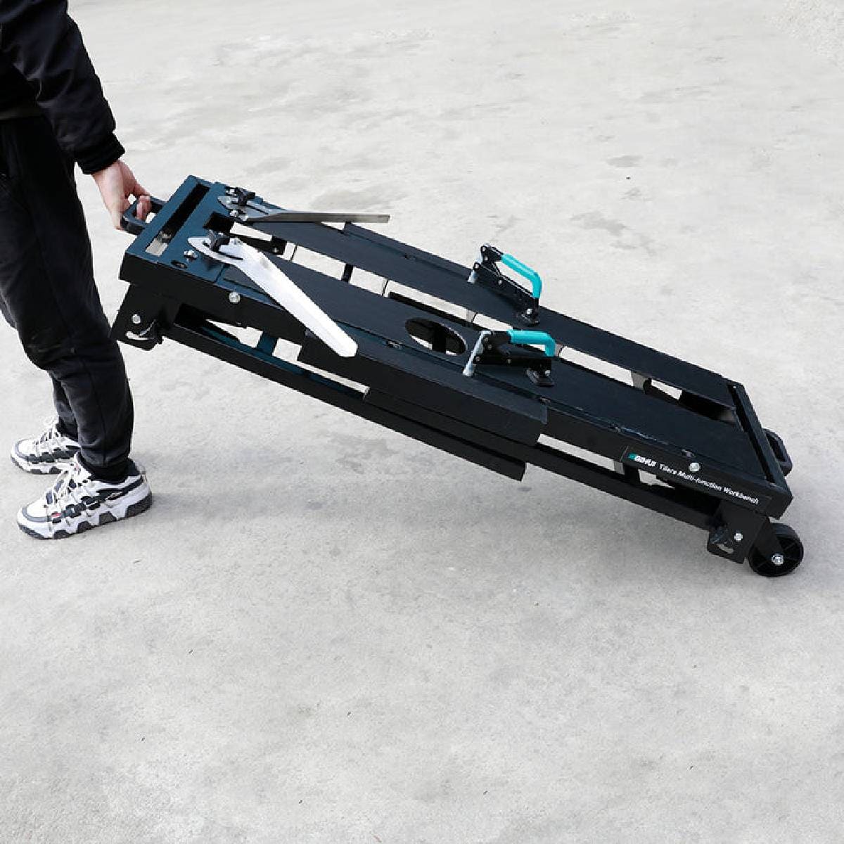 - Ελαφρύς, στιβαρός και σταθερός πάγκος με 2 τροχούς.