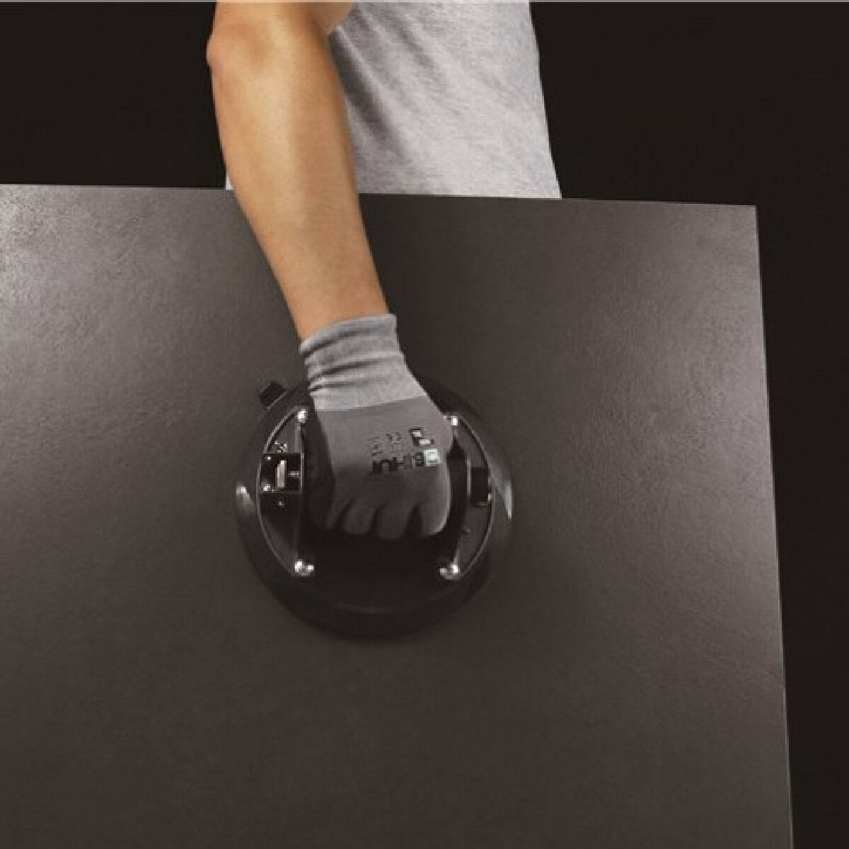 Η βεντούζα αντλίας κενού BIHUI 8 ιντσών (203mm) έχει σχεδιαστεί για ομαλό και κυματοειδές πλακάκι. Ικανότητα ανύψωσης 110kg. Η βεντούζα είναι εξοπλισμένη με ένα κουμπί κενού για συμπίεση με μια γραμμή ένδειξης -έχει ένα κόκκινο σημάδι πάνω του, το οποίο προειδοποιεί για μείωση της πίεσης ή για την ανάγκη άντλησης. Το κιτ περιλαμβάνει προστατευτικό κάλυμμα και έρχεται με βεντούζα σε ανθεκτική πλαστική θήκη για εύκολη αποθήκευση και μεταφορά. Πλεονεκτήματα: Υψηλή αξιοπιστία που επιτυγχάνεται μέσω οπτικής παρακολούθησης της κατάστασης κενού Ικανότητα ανύψωσης: 110kg Διάμετρος αναρρόφησης: 203mm Χειροκίνητη αντλία εμβόλου για παραγωγή κενού Ο συνδυασμός αποδοτικών υλικών και υψηλής αντοχής μετάλλου μαζί με εργονομικό άνετο πλαστικό και σήματα ασφαλείας BG/GS είναι τα κύρια πλεονεκτήματα αυτών των βεντουζών. Υλικά κατασκευής: Μηχανισμός αντλίας αρνητικής πίεσης: ορείχαλκος και πλαστικό Στοιχεία στερέωσης: χάλυβας Αναρρόφηση: πολυουρεθάνη υψηλής σκληρότητας Χωνί αναρρόφησης: ειδική ένωση πολυoυρεθάνης Βάρος: 1,6kg