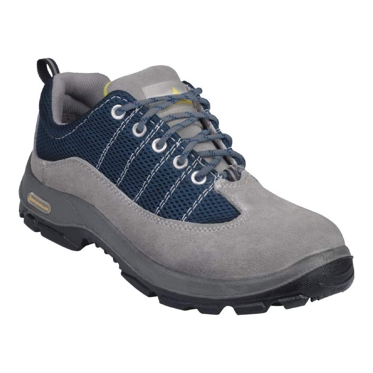Παπούτσι εργασίας της εταιρείας Delta Plus, το οποίο παρέχει προστασία δακτύλων κατά των χτυπημάτων και διαθέτει αντιολισθητική, αντιστατική και αντιδιατρητική σόλα βάσει του προτύπου ασφαλείας S1P. Η αντιστατική σόλα αποτρέπει τη συσσώρευση του στατικού ηλεκτρισμού από το σώμα χωρίς να παρέχει επαρκή προστασία από ηλεκτροπληξία, ενώ η αντιδιατρητική σόλα προστατεύει το πέλμα από πάτημα κοφτερών και μυτερών αντικειμένων.