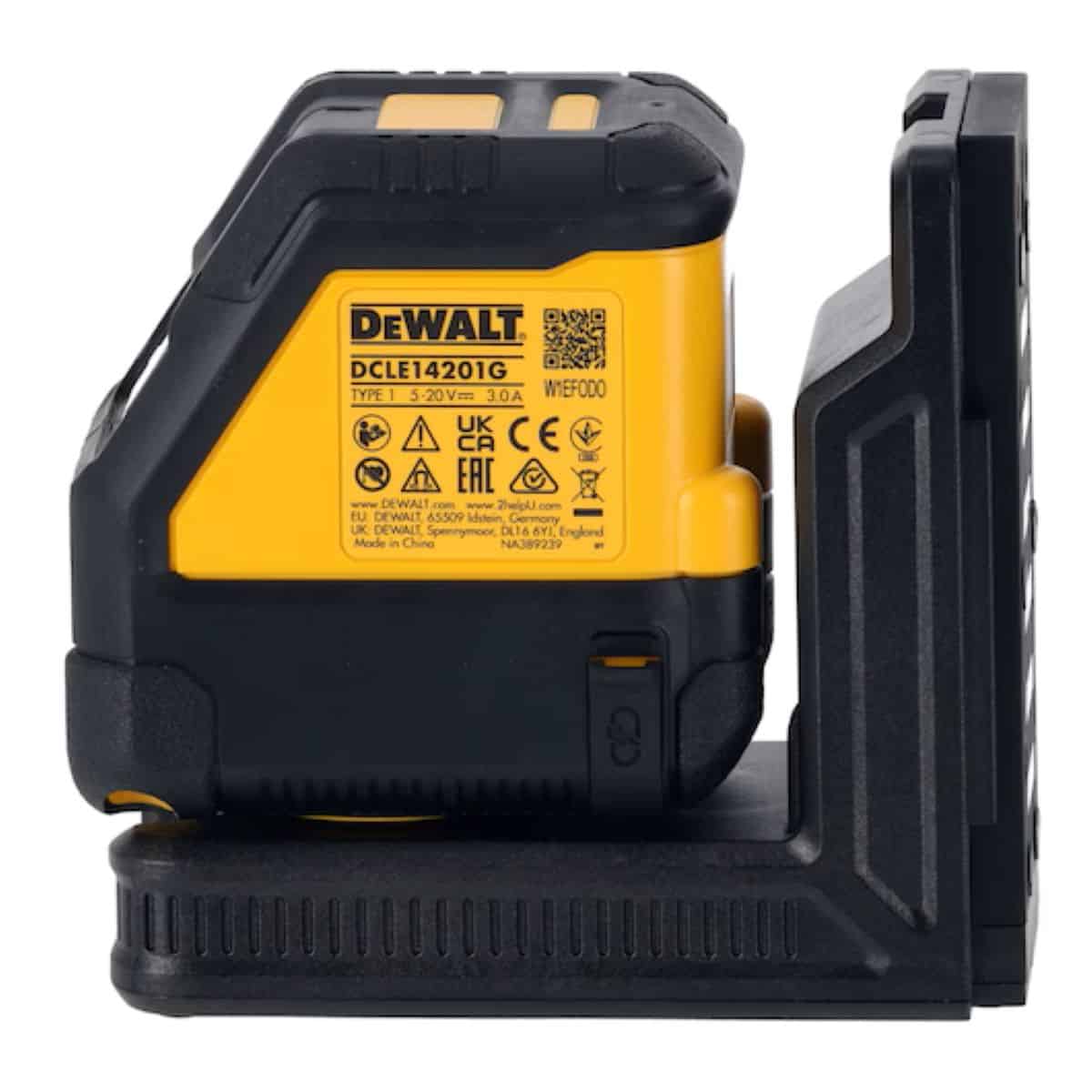 Το DEWALT DCLE14201GB-XJ USB Γραμμικό Λέιζερ Πράσινης Δέσμης είναι ένα ελαφρύ γραμμικό λέιζερ με εμβέλεια 45m που ενσωματώνει την τεχνολογία POWERSTACK™. Η ενσωματωμένη μπαταρία USB, που φορτίζεται μέσω καλωδίου USB-C, χρησιμοποιεί την τεχνολογία μπαταρίας POWERSTACK™ για να διαρκεί τουλάχιστον 11 ώρες όταν είναι πλήρως φορτισμένη. Αν και το λέιζερ μπορεί να χρησιμοποιηθεί όταν είναι συνδεδεμένο, επιτυγχάνει 80% φόρτιση σε μόλις 30 λεπτά.\n\nΤο DCLE14201 παρέχει μια πράσινη γραμμική δέσμη λέιζερ με εμβέλεια εργασίας 45m ή 100m όταν χρησιμοποιείται με ανιχνευτή. Με βελτιωμένη ακρίβεια +/- 3mm @ 10m, το λέιζερ προσφέρει επαγγελματική ακρίβεια και εξασφαλίζει ακρίβεια στη δουλειά.\n\nΕκτός από τη χειροκίνητη κλίση, την αυτόματη ευθυγράμμιση και το κλείδωμα εκκρεμούς, το USB Γραμμικό Λέιζερ Πράσινης Δέσμης περιλαμβάνει έλεγχο ρύθμισης φωτεινότητας της δέσμης για να ταιριάζει με τις γενικές συνθήκες φωτισμού στο χώρο, ενώ η περιστρεφόμενη βάση με μαγνήτες προσφέρει άμεση προσάρτηση είτε σε μεταλλικές ράγες είτε σε χαλύβδινες κατασκευές.\n\nΜε βαθμό προστασίας IP65 για προστασία από τα στοιχεία, το DCLE14201 μπορεί επίσης να προσαρτηθεί σε τρίποδο χάρη στο σπείρωμα 1/4” ή 5/8” στη βάση.
