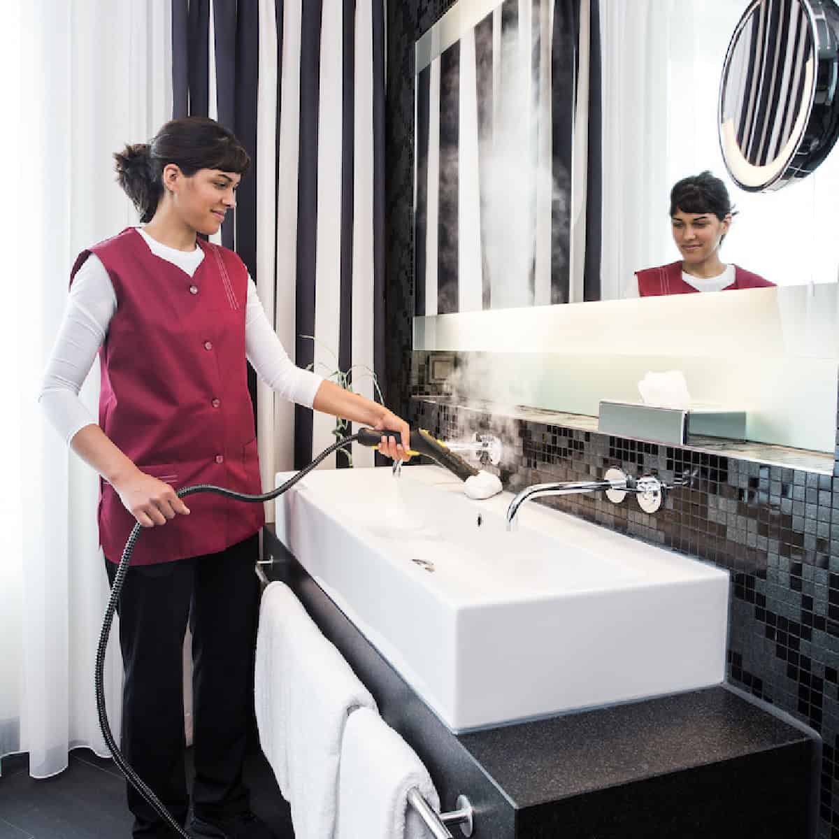 Ατμοκαθαριστής SG 4/4 συμπαγών διαστάσεων με ισχυρή πίεση ατμού 4 bar, με δυνατότητα ελέγχου ποσότητας ατμού και λειτουργία VapoHydro για τέλειο καθαρισμό και πιστοποιημένη απολύμανση χωρίς χημικά.