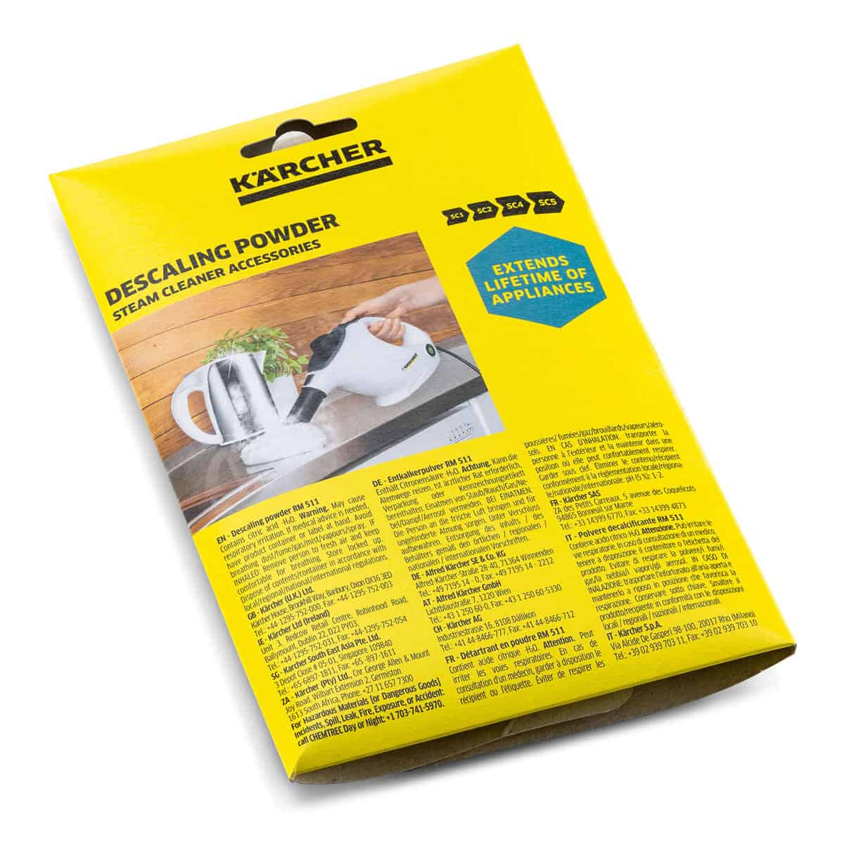 Εξαιρετικά αποτελεσματική σκόνη αφαλάτωσης. Κατάλληλη για τους ατμοκαθαριστές της Kärcher και άλλες συσκευές ζεστού νερού, όπως βραστήρες και καφετιέρες. Η χρήση της σκόνης αφαλάτωσης διασφαλίζει μεγαλύτερη διάρκεια ζωής στα μηχανήματα σας και χαμηλότερη κατανάλωση ενέργειας.