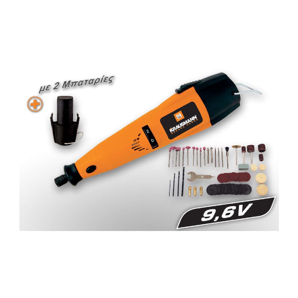 • Συμπεριλαμβάνονται: [2] Δύο μπαταρίες 750 mAh Ni-Cd, 60 εξαρτήματα για σκάλισμα, χάραξη, φρεζάρισμα, τρόχισμα, ακόνισμα, καθάρισμα, γυάλισμα, τρίψιμο, διάτρηση