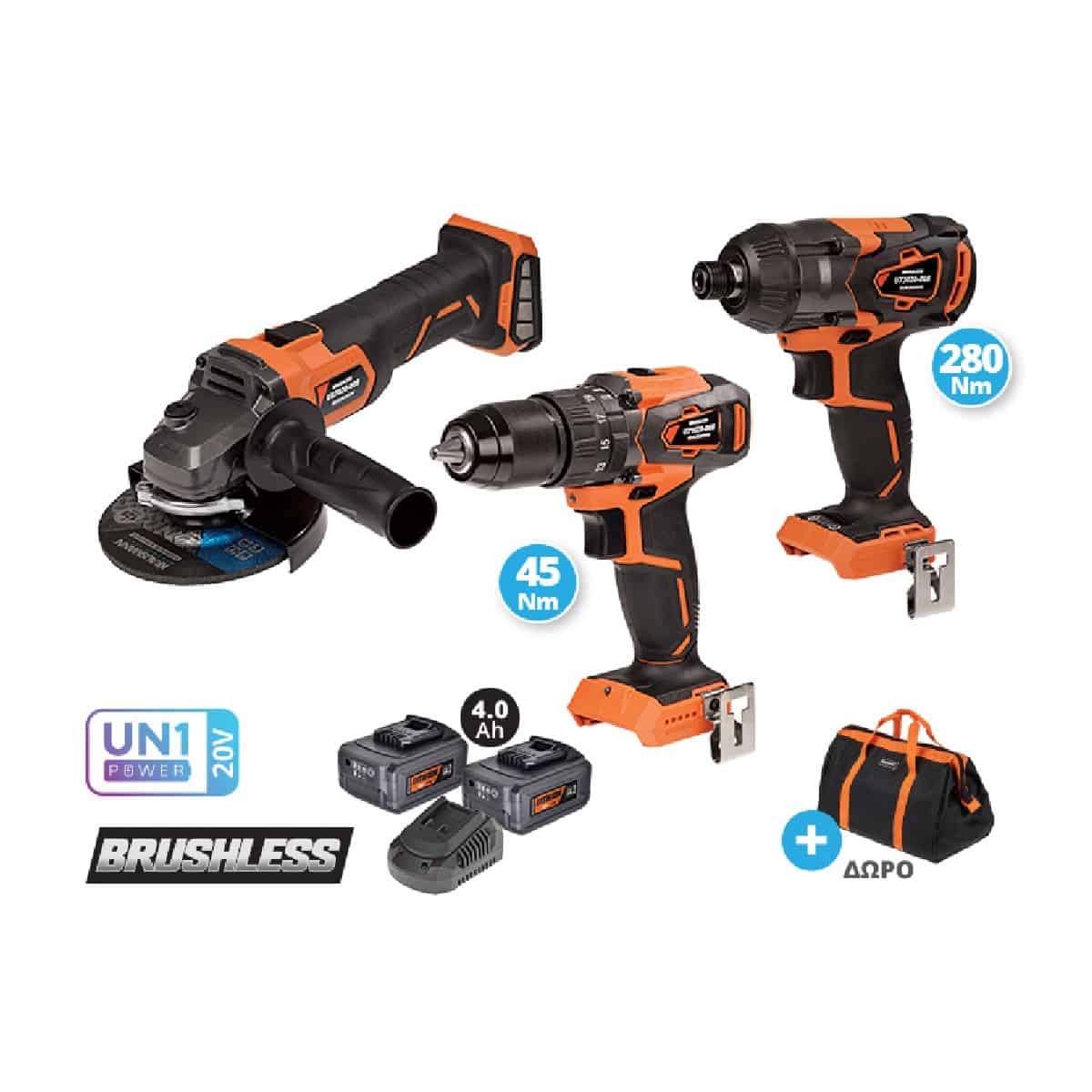 Μπαταρίας, 20V, 2 μπαταρίες 4Ah, Ταχυφορτιστής, Τσάντα μεταφοράς