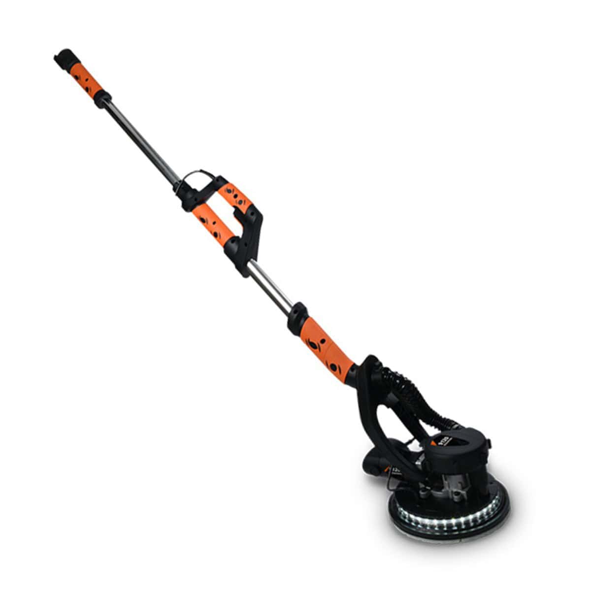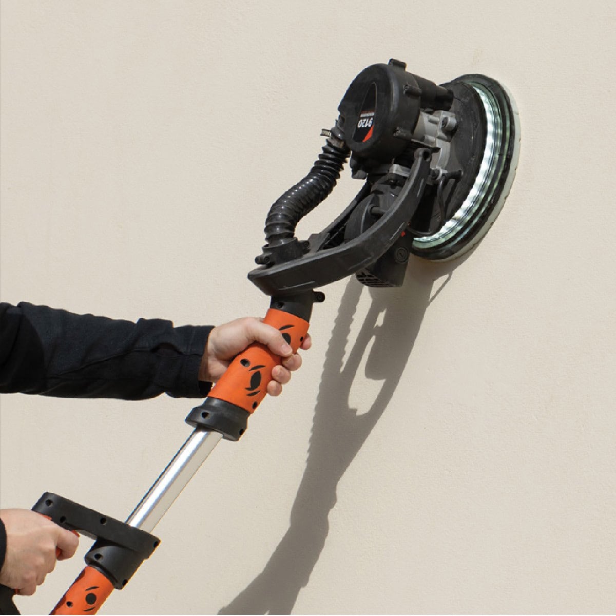 Τριβείο τοίχου (Καμηλοπάρδαλη) υψηλής ισχύος 800W με ενσωματωμένη ηλεκτρική σκούπα και ταινία LED διπλής σειράς στην κεφαλή. Διαθέτει τηλεσκοπικό σωλήνα με εύκολη ρύθμιση 1.58 – 2.00m και μεταβλητή ταχύτητα χωρίς φορτίο 550-1900 rpm για ομαλό φινίρισμα. Η αποσπώμενη βάση 1/3 ενδείκνυται για δύσκολα σημεία. Η σύγχρονη καινοτομία χωρίς βουρτσάκι προσφέρει τέλειο και γρήγορο αποτέλεσμα χωρίς γραμμές, με ελάχιστο κόπο, αποφεύγοντας τη δημιουργία κοιλωμάτων στις επιφάνειες εργασίας.